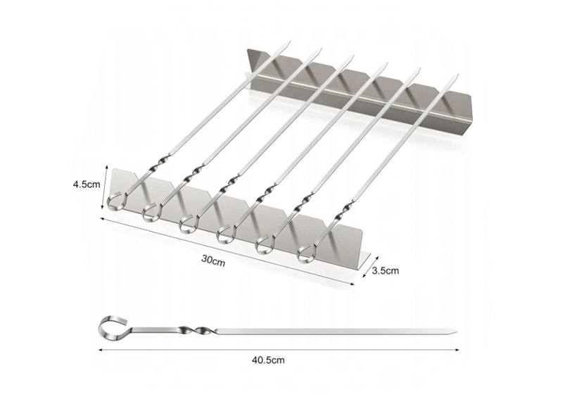 6x szpikulce do szaszłyków z podstawką, stalowe w etui