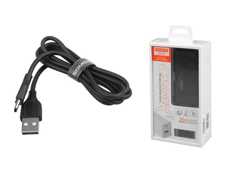 Ładowarka sieciowa SOMOSTEL 36W+KABEL TYP-C czarna POWER DELIVERY SMS-A80 PD