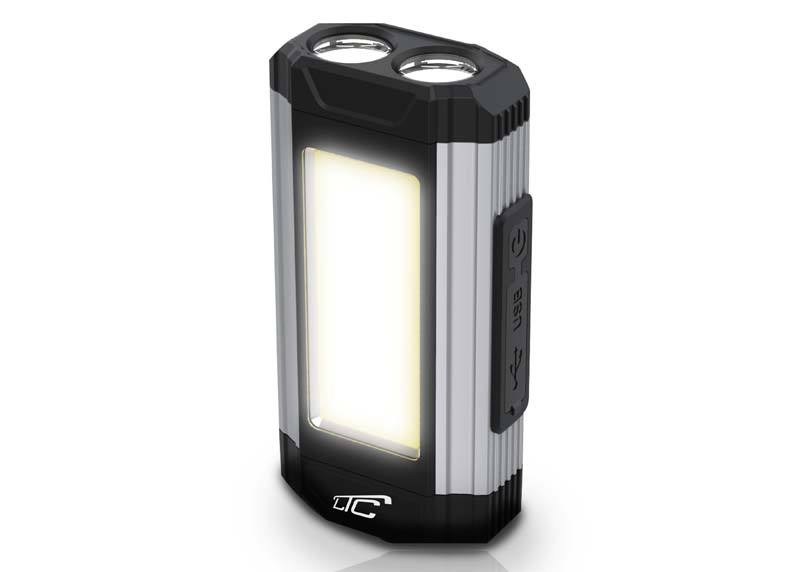 Lampa posiada dwa źródła światła: 2xPE oraz COB, o mocy 4 W dla przedniego światła i 6 W dla bocznego światła. Emituje strumień świetlny o wartości 300 lm dla przedniego światła i 500 lm dla bocznego światła, co zapewnia jasne i efektywne oświetlenie z efektywnością 80 lm/W. Temperatura barwowa wynosi 6500 K dla białego światła i 1800 K dla czerwonego, co sprawia, że lampa jest idealna do różnych zastosowań.