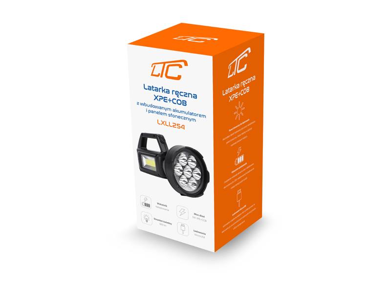 Latarka ręczna solarna LTC 7-LED XPE+ COB 500lm 3W, aku.1200mAh, powerbank IP65,MicroUSB