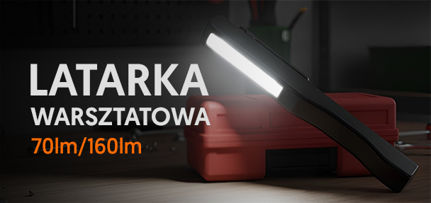 Latarka warsztatowa podłużna COB / ABS plastik, czarna.
