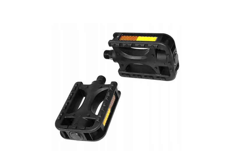 Komplet 2 standardowych pedałów rowerowych. Wyposażone w standardowy gwint montażowy 14 mm (9/16``). Solidne łożyska kulkowe zapewniają długie użytkowanie. Każdy z pedałów wyposażony został w obustronne odblaski.Cechy produktu: