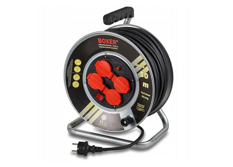 Przedłużacz bębnowy Boxer 4x2p+Z, 16A3x2,5mm 50m z klapką metal
