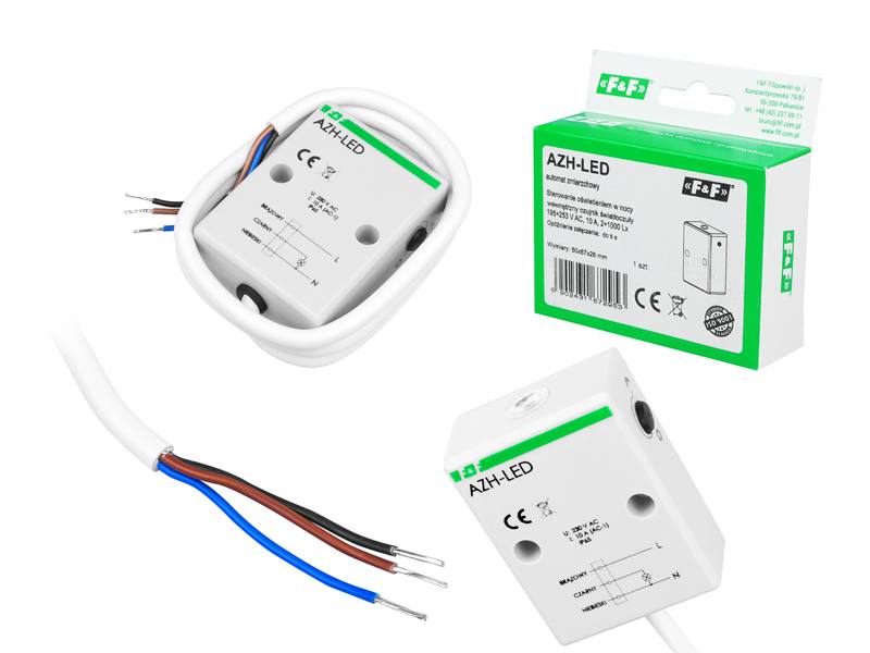 AZH-LED jest automatem zmierzchowym z wbudowanym czujnikiem światła, zamkniętym w hermetycznej obudowie i specjalnie przystosowanym do załączania oświetlenia LED. Automat zmierzchowy AZH-LED z powodzeniem poradzi sobie z załączeniem i wyłączeniem oświetlenia LED, które, pomimo swojej energooszczędności, generuje silne udary prądowe w momencie załączenia. Udary te niszczą klasyczne przekaźniki.