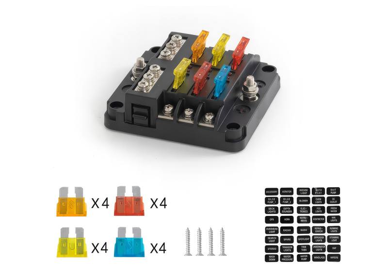 UNIWERSALNA OCHRONA --- Niezależnie od tego, czy budujesz dużą konfigurację oświetlenia lądowego, czy dodajesz elektryczne okna, skrzynka bezpieczników ma pojemność 100 A, każdy bezpiecznik ma 30 A i ma szynę uziemiającą, co wystarczy, aby chronić całą ciężką pracę.