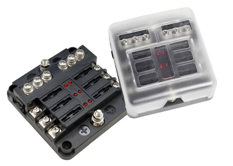 6-drożny blok bezpieczników ze wskaźnikiem ostrzegawczym LED - 6 obwodów ze skrzynką bezpieczników z szyną ujemną
