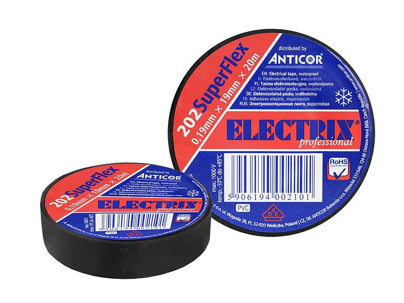 Taśma Electrix 202 Superflex, czarna, 19 mm x 20 m.