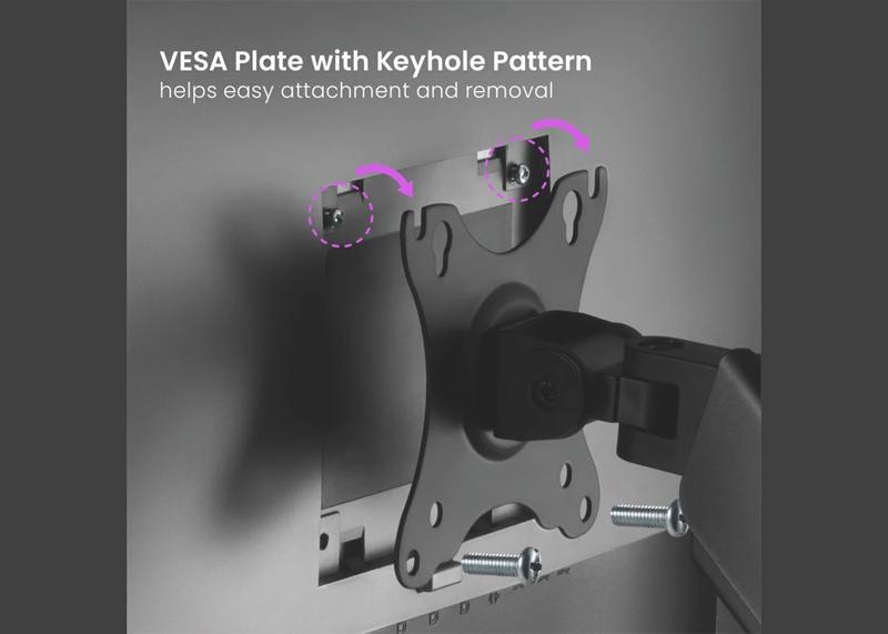 Uchwyt do monitorów montowany na ścianie jest idealny zarówno dla monitorów biurowych, jak i gamingowych, kompatybilny ze standardami VESA 75 x 75 mm i VESA 100 x 100 mm. Jego intuicyjny design ułatwia montaż na ścianie, a zintegrowany system zarządzania kablami pomaga utrzymać porządek na stanowisku pracy. Dzięki regulacji pochylenia i obrotu, ramię sprawdzi się w różnorodnych środowiskach - nie tylko przy biurku, ale również w garażach, centrach serwisowych czy domowych strefach relaksu.
