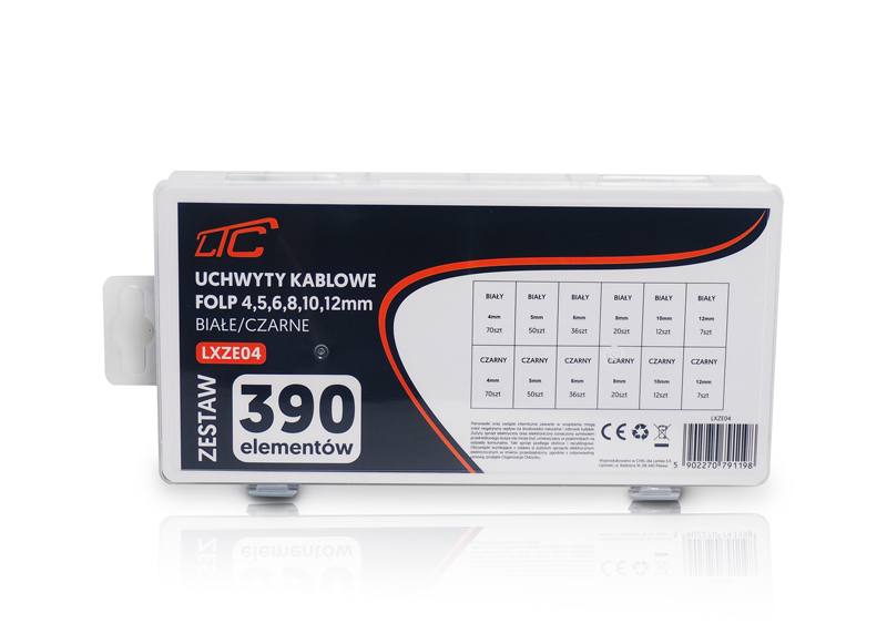 UCHWYTY KABLOWE FLOP ZESTAW 4,5,6,8,10,12mm BIAŁE/CZARNE 390szt BOX