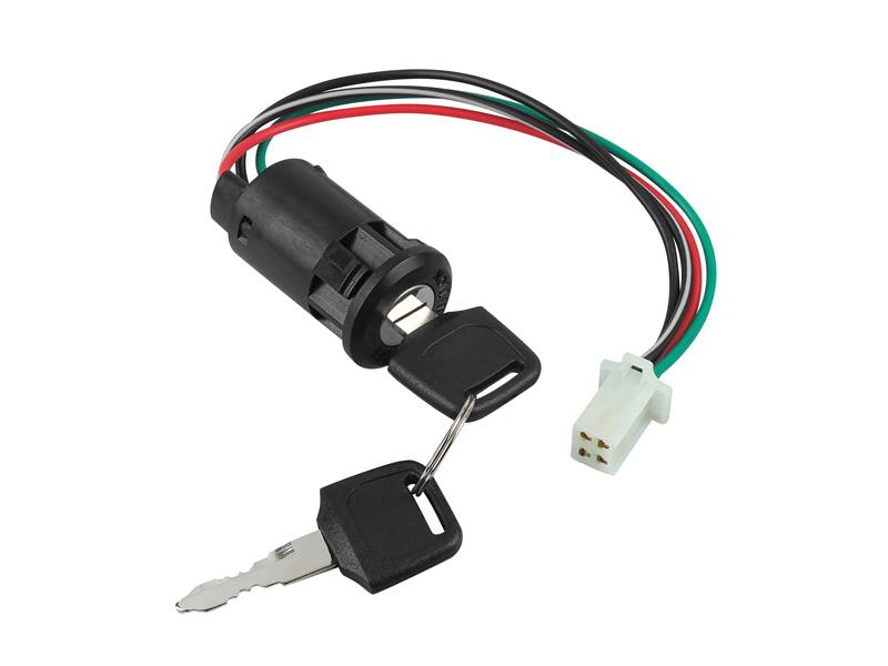 Uniwersalna stacyjka dedykowana do quadów (ATV) oraz motocykli. Wtyczka typu żeńskiego wyposażona w kostkę z 4 pinami. W komplecie dodatkowo 2 kluczyki do stacyjki.Cechy i specyfikacja produktu: