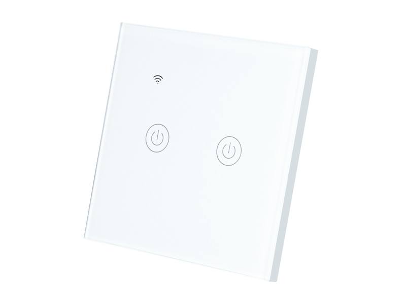 Włącznik światła WIFI i dotykowy, podwójny, szklany panel, biały.