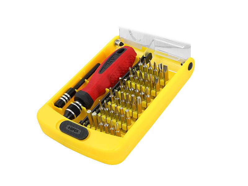 Wkrętaki wykonane zostały z niesamowicie twardego metalu co ułatwia pracę, jak również eliminuje ścieranie się końcówek wkrętaków. Duża ilość końcówek zapewnia dopasowanie do niemalże każdego rodzaju śruby.
