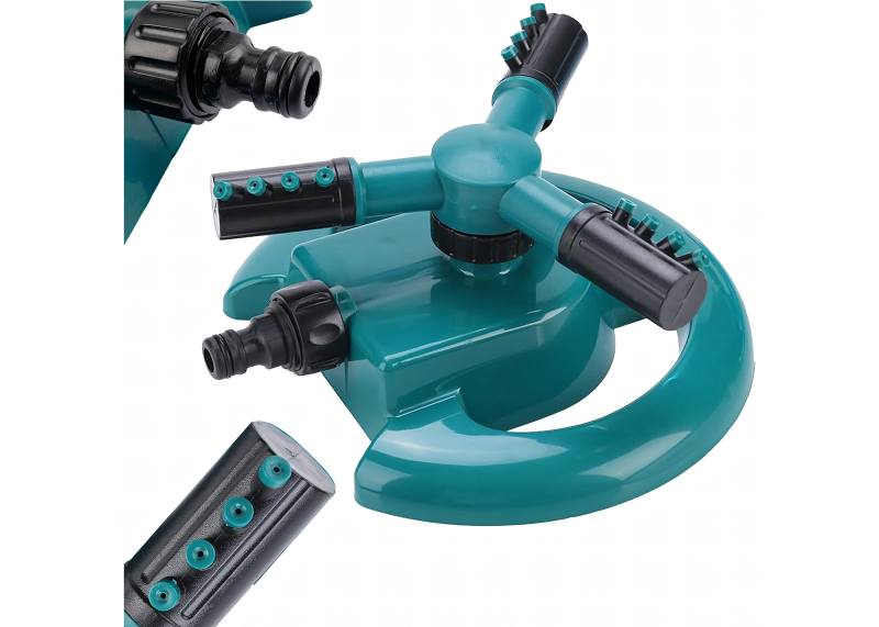 Zraszacz ogrodowy obrotowy 360stopni, trójramienny,12 dysz,promień zraszania do 10m